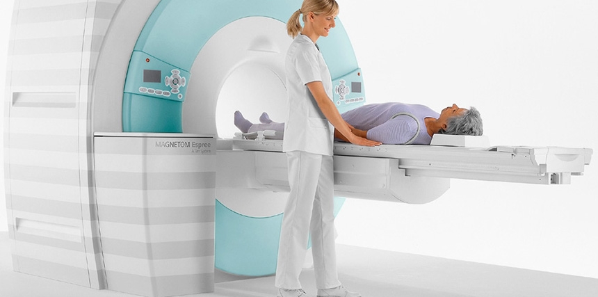 MRE techniques can be performed on a magnetic resonance imaging (MRI) machine, modified with an acoustic driver and special software, according to a study published by Talwalkar Et Al. in the journal Hepatology. The study explains that the acoustic driver sits outside the magnet room — the chamber where the patient lies during the MR scans — and generates “acoustic pressure waves” between 40 and 120Hz per second. A tube connecting the wave–generating driver to another driver placed on the patient’s anterior abdominal wall transfers the waves.